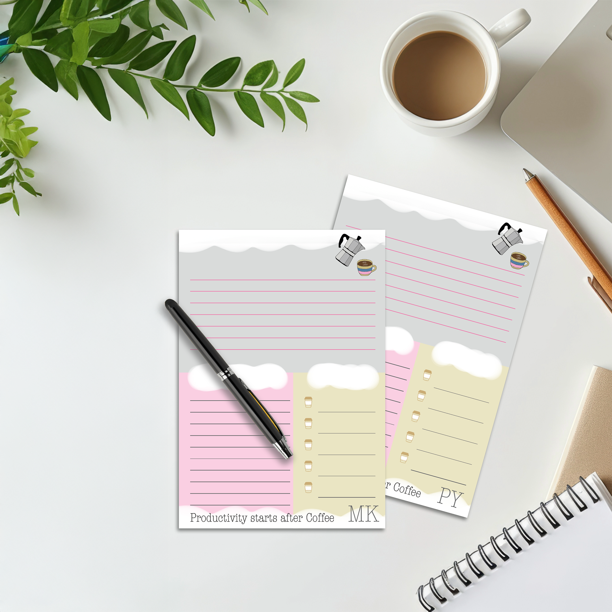 Coffee before Work. Ideal notepad for weekly planning with coffee vibes.