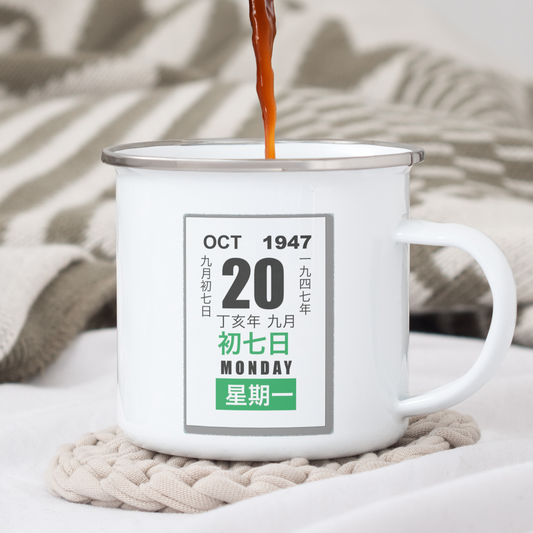 "A Chinese Calendar Page" Customise Special Date Enamel Mug