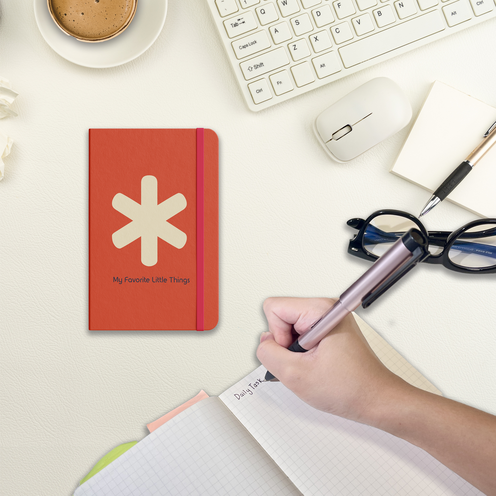 The Asterisk Punctuation Mark Journal adds a bold orangey red pop to your desk, perfect for highlighting important ideas or marking moments that matter. Use it for brainstorming, planning your starred priorities or as a creative notebook to track inspiration.