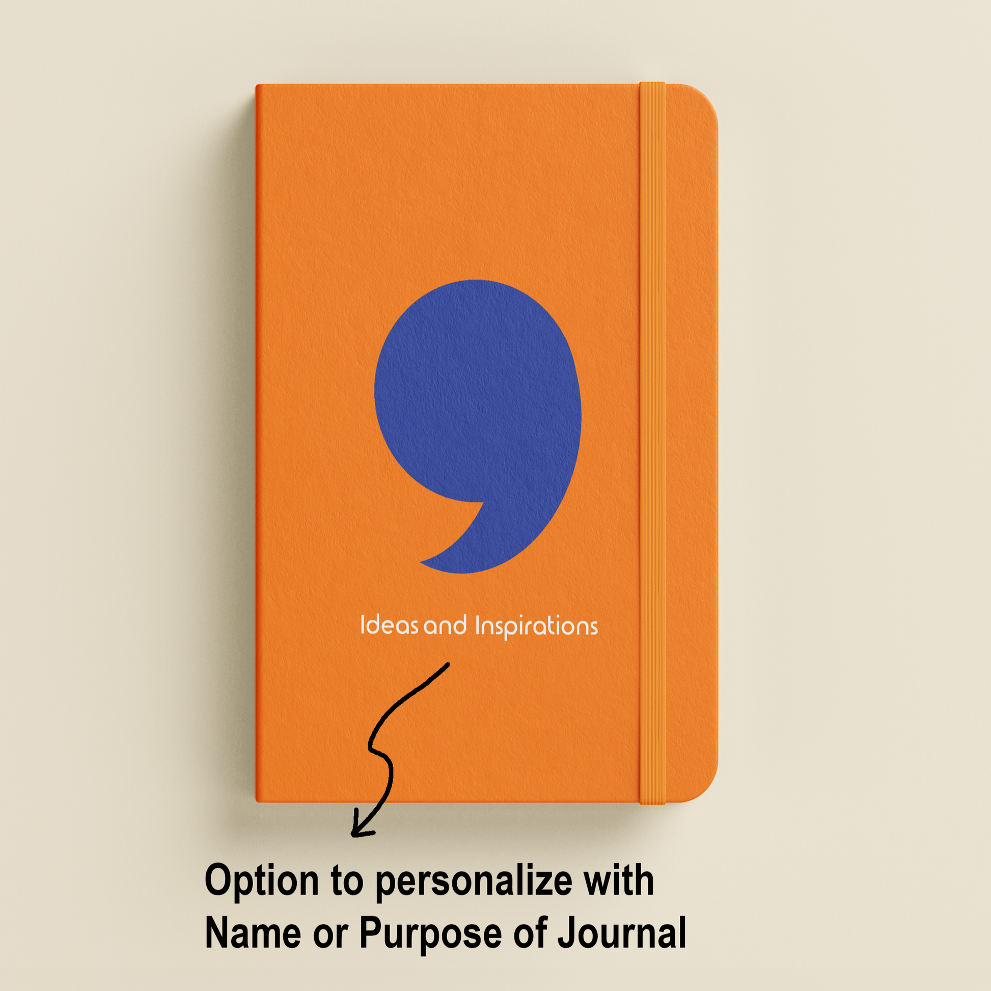 Pause and plan with our Comma Punctuation Mark Journal—the perfect place to jot down reflections, track ongoing projects or map out your next steps. Customisable with your purpose/function, it's available in bold orange color in A5 or A6 size for inspiration on the go. This is also an ideal gift for someone special.